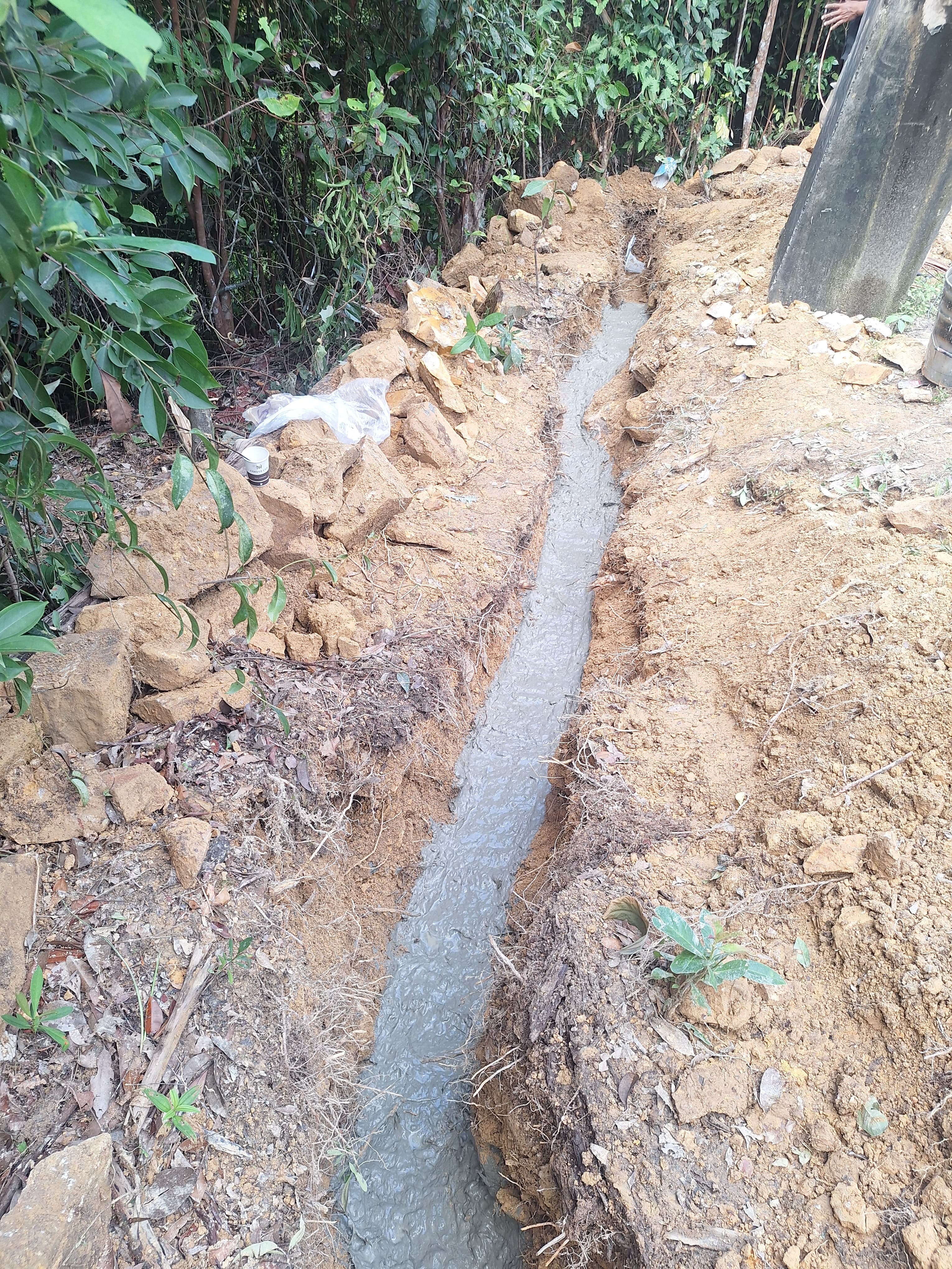Add 6-8 liters of water to one bag (10kg) of DOUDEN CRETE S. Mix thoroughly. Pour over lead wires. Each bag covers approximately 1.5-2 meters at 40cm width.